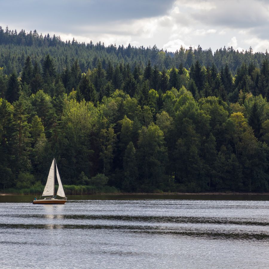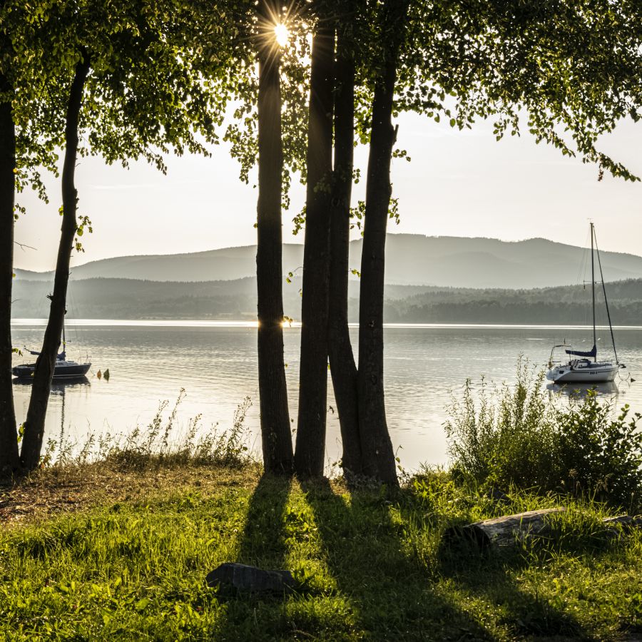 Nádherné prostředí, výhled na plachetnice, prozářené odlesky na hladině a provoněný vzduch středoevropských lesů. Krajina, kam se lidé vrací.