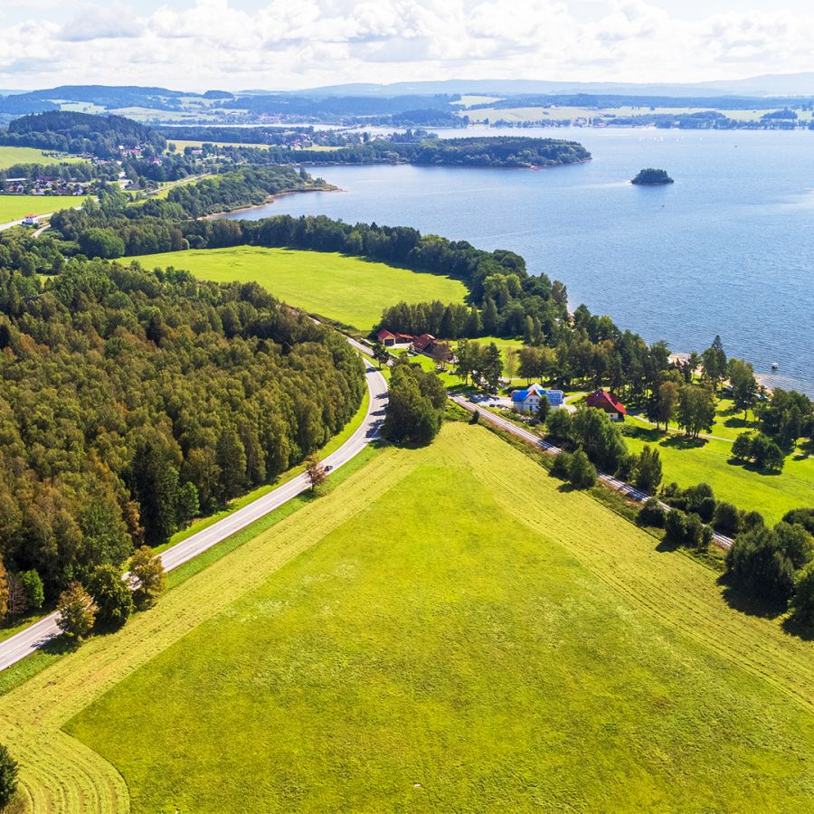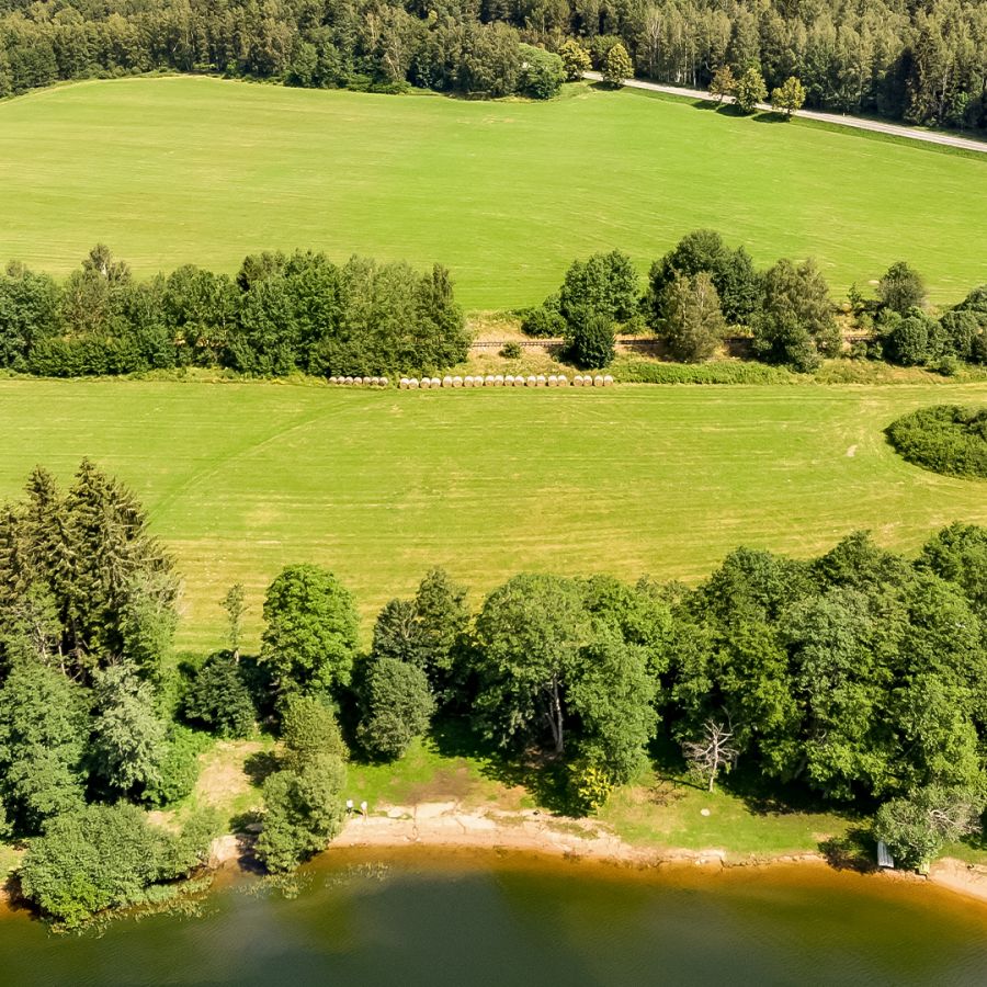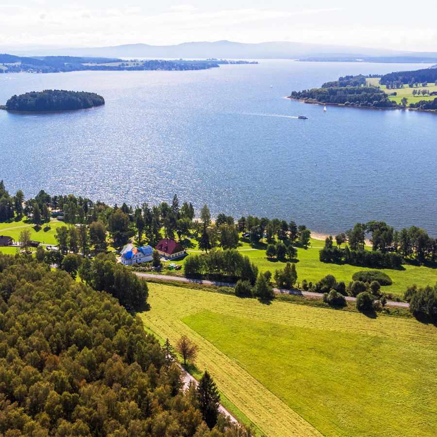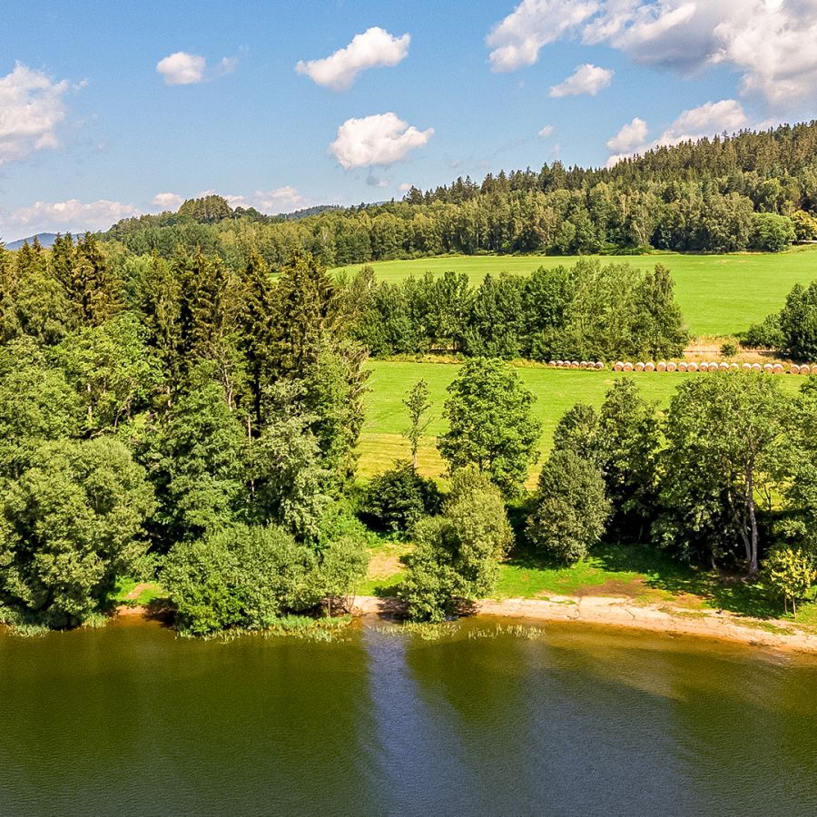 Užijte si soukromí a atmosféru místních lesů i nerušený čas na odpočinek na vlastním pozemku na břehu největší vodní hladiny v České republice.